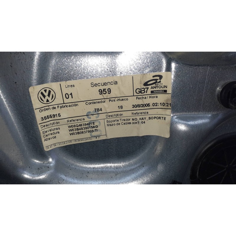 Recambio de elevalunas trasero izquierdo para volkswagen polo (9n1) referencia OEM IAM W06Q4839401E SIN MOTOR ELECTRICO