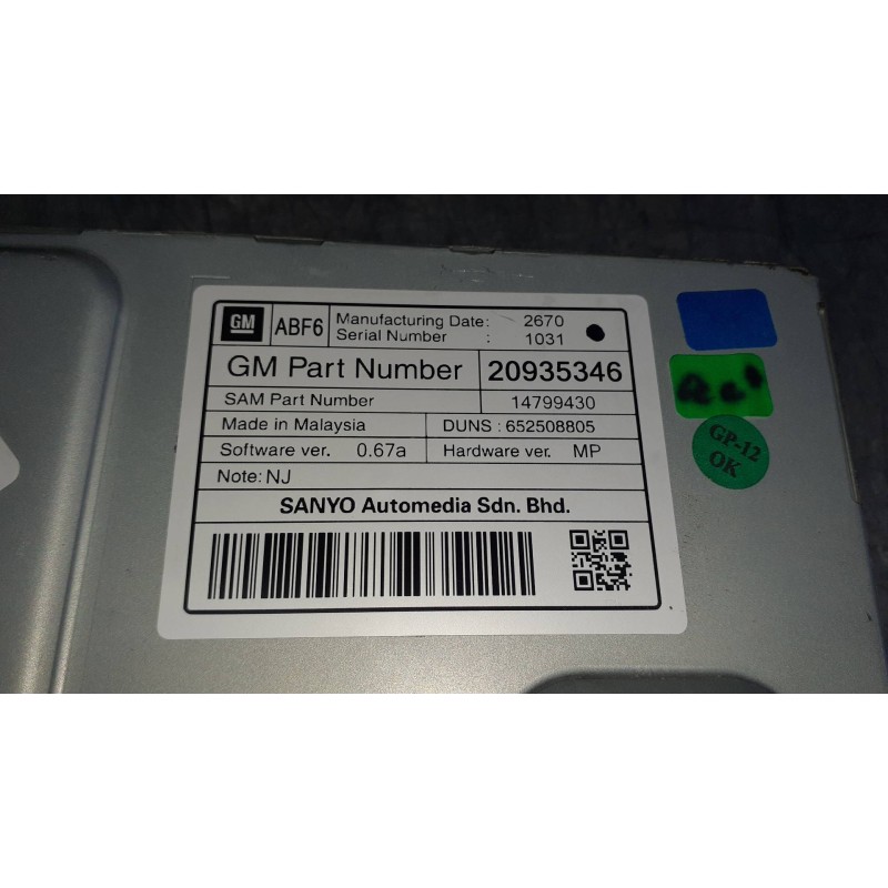 PANTALLA MULTIFUNCION 20935346 14799430 GM - SANYO