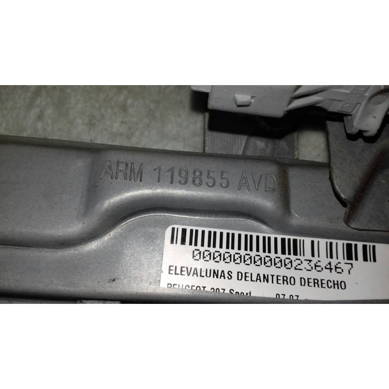 400912C, ARM119855AVD. Recambio de elevalunas delantero derecho para peugeot 207 sport referencia OEM IAM 9681182280S CON MOTOR ELECTRICO